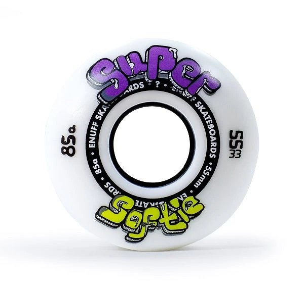 Set of four Enuff Super Softie Skateboard Wheels in 55mm 85a, Enuff Super Softies Wheels are fantastic for anyone looking for that ultra smooth ride whilst still keep the profile and feel of a classic skateboard wheel.