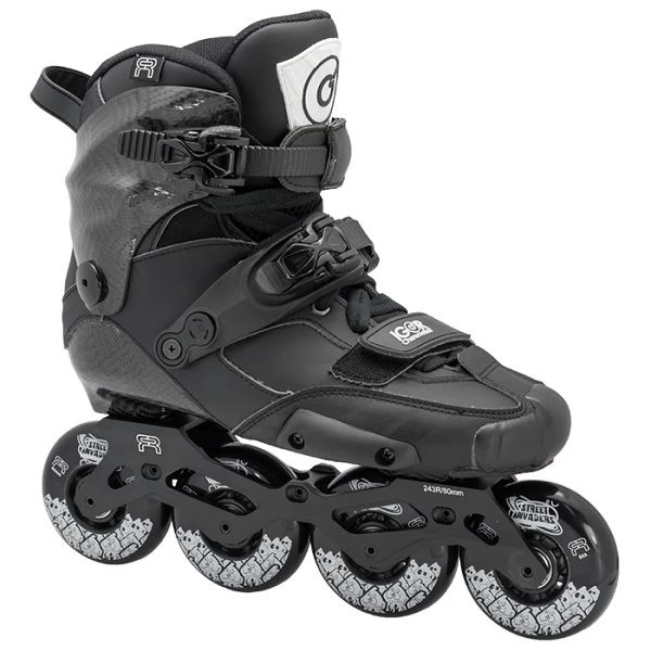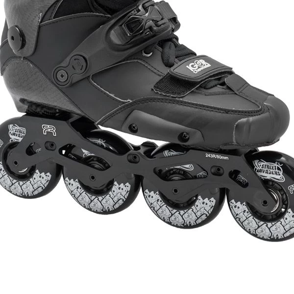 At the base of the skate you will find a pre rockered FR 4D frame, UK 6 and below sizes come with a 231mm frame and 76mm wheels, size UK 6.5 and above come with a 243mm frame and 80mm wheels. Street Invaders are the wheels that come as standard and within these you have ILQ 9 Slalom Pro Twincam bearings.