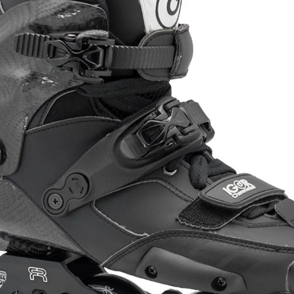 These are Igor Cheremetieff’s pro model FR Skates, Igor is a World Freestyle Slalom Champion so as you would expect these skates are the best of the best. The carbon boot is incredibly responsive and lightweight meaning you can skate with high levels of precision and control, exactly what you need to compete at the highest level.