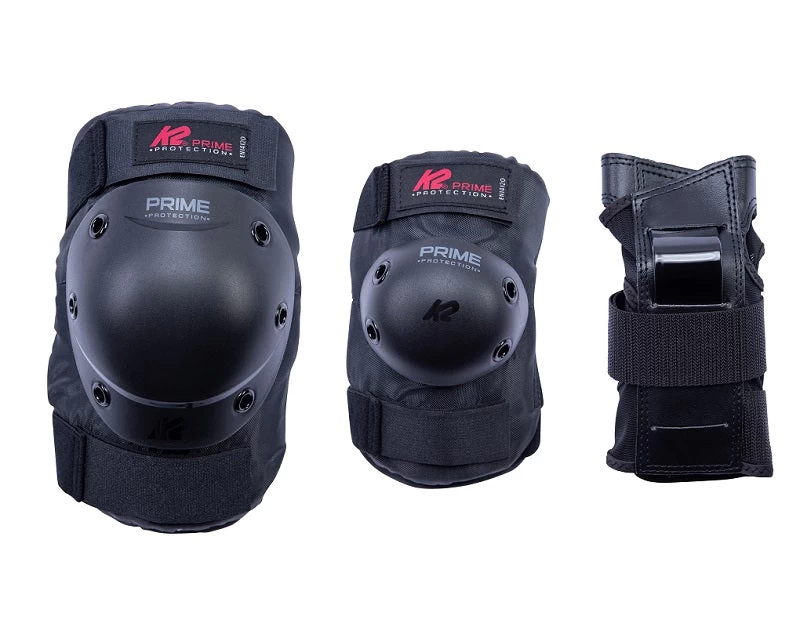 The K2 Prime Adult Triple Pad Set in Black contains Knee, Elbow and Wrist Pads and is suitable for Inline Skating, Skateboarding and Scooter riding.