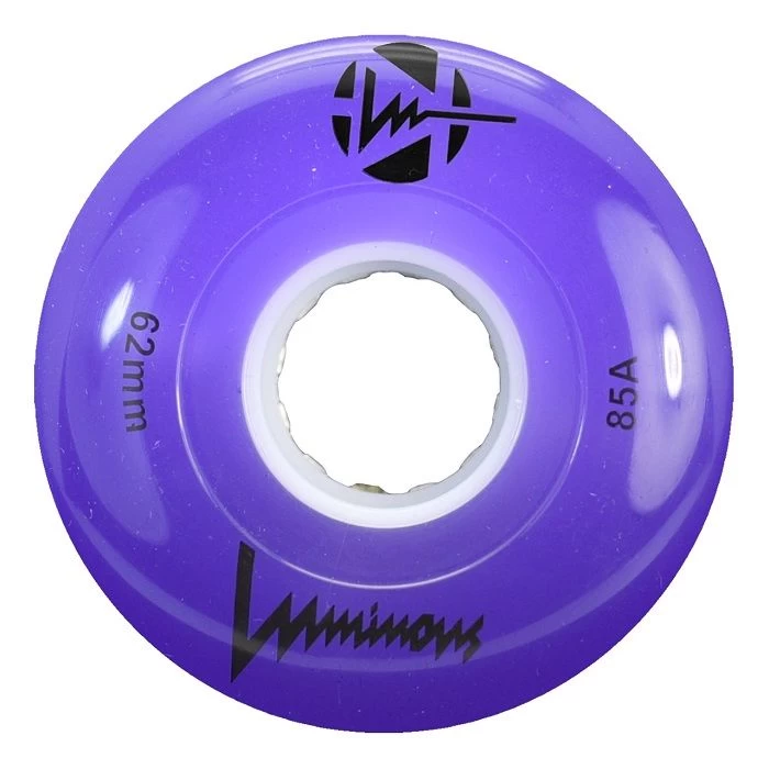 Set of four Luminous Light Up Quad Wheels in Purple 62mm 85a, fine for both indoor or outdoor use. These are the best light up roller skate wheels we have ever got our hands on, the LED’s are super bright and give a smooth even glow.