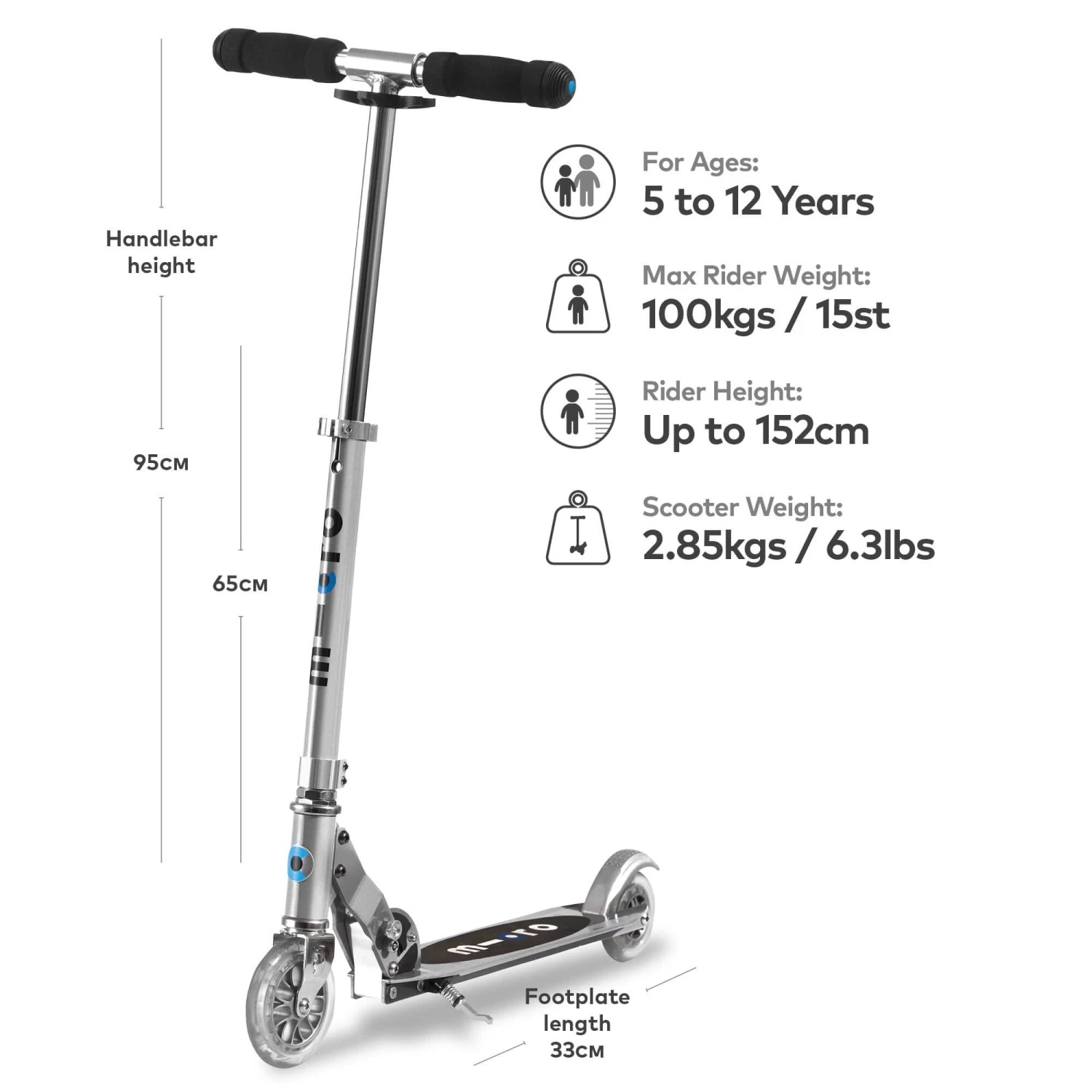 Steers like a bike, rides like a dream. Micro’s agile Sprite in Silver puts smiles on faces as children enter the world of two-wheel scooting. Whether building up speed or negotiating obstacles, kids can do it with ease thanks to the Sprite’s intelligent design. With adjustable handlebars for years of scooting fun.