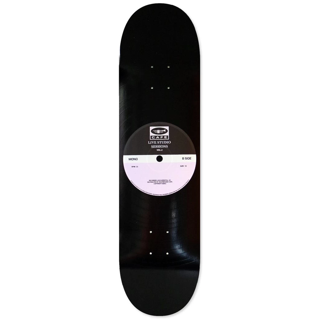 The latest release of Skateboard Cafe’s 45 decks have arrived and feature raised circles to give the look of a real record. Part of a set of 3 that would look wicked as a series on the wall or you could just skate it.