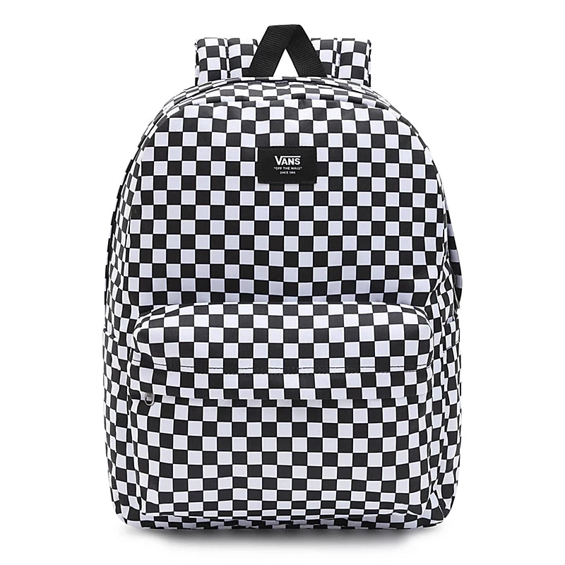 The Vans Old Skool Check Backpack features one large main compartment, a front zip pocket with an organiser for easy access and a water bottle pocket. Straight-cut padded shoulder straps give this bag extra comfort. It also features the Vans logo on the front and an allover checker print. Measuring 41.9 L x 32.4 W x 12.1 D cm, it has a 22-litre capacity.